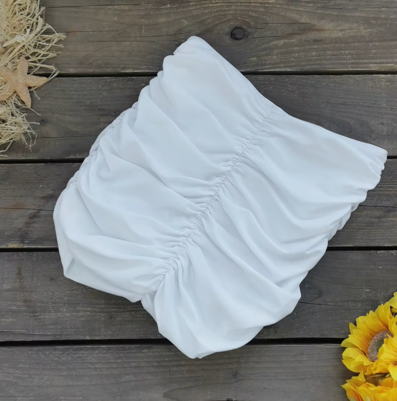 This exclusive bikini includes a matching mini skirt for an extra touch of elegance and versatility. Perfect for those who want to combine fashion and function in a timeless beachwear piece.