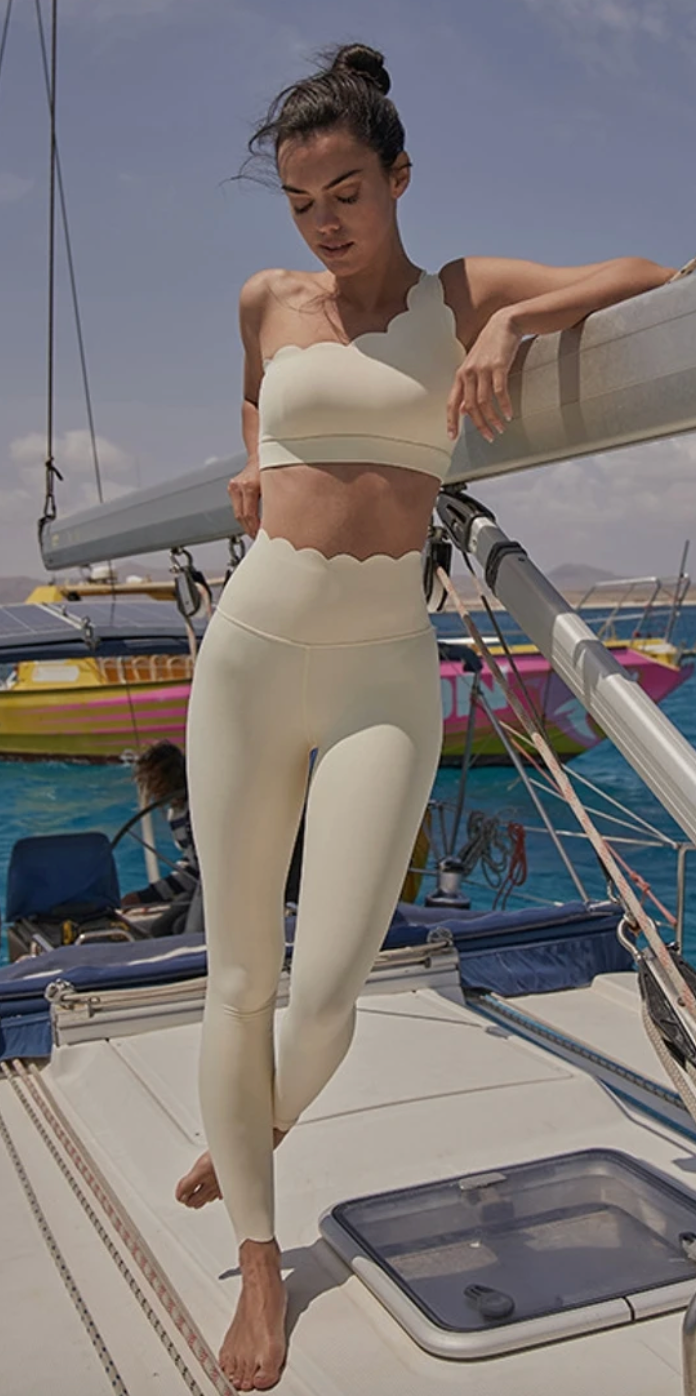 The Petal Trim High Waist Leggings and Padded Bra are perfect for yoga, pilates and other low-intensity activities, these garments made from eco-friendly material with four-way stretch move with you, offering unrestricted flexibility and comfort with every move. The material is also breathable and quick-drying, keeping you fresh throughout your workout.